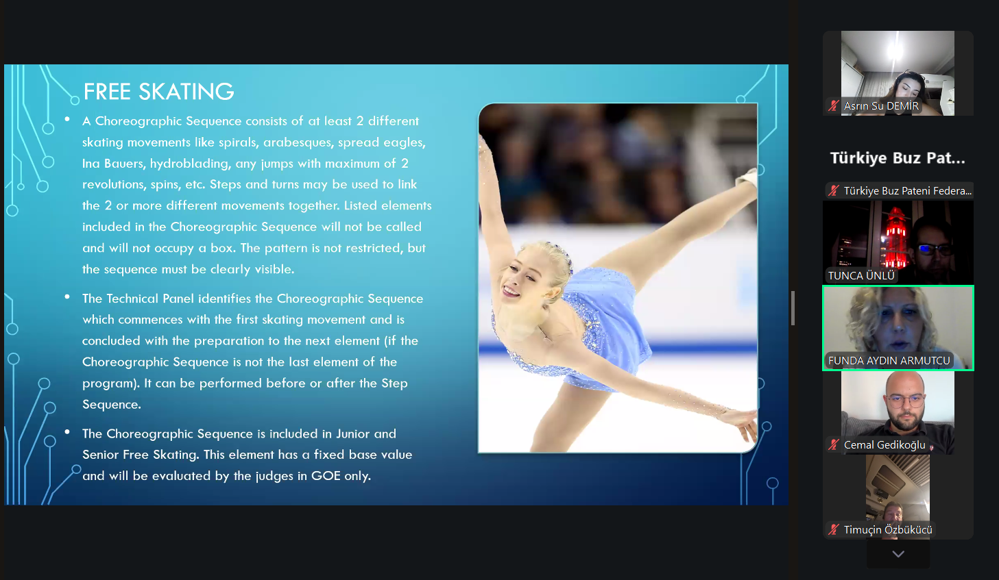Federasyonumuzca 31 Ağustos - 01 Eylül 2025 tarihlerine online olarak düzenlenen 2025 - 2026 Sezonu Artsitik Buz Pateni Antrenör Vize - Gelişim Seminerleri tamamlandı. Seminerlerde eğitmen olarak görev alan Teknik Uzmanlarımız Sayın Funda Aydın ARMUTÇU ve Sayın Tunca ÜNLÜ'ye teşekkür eder, tüm antrenörlerimize başarı dolu bir sezon dileriz.