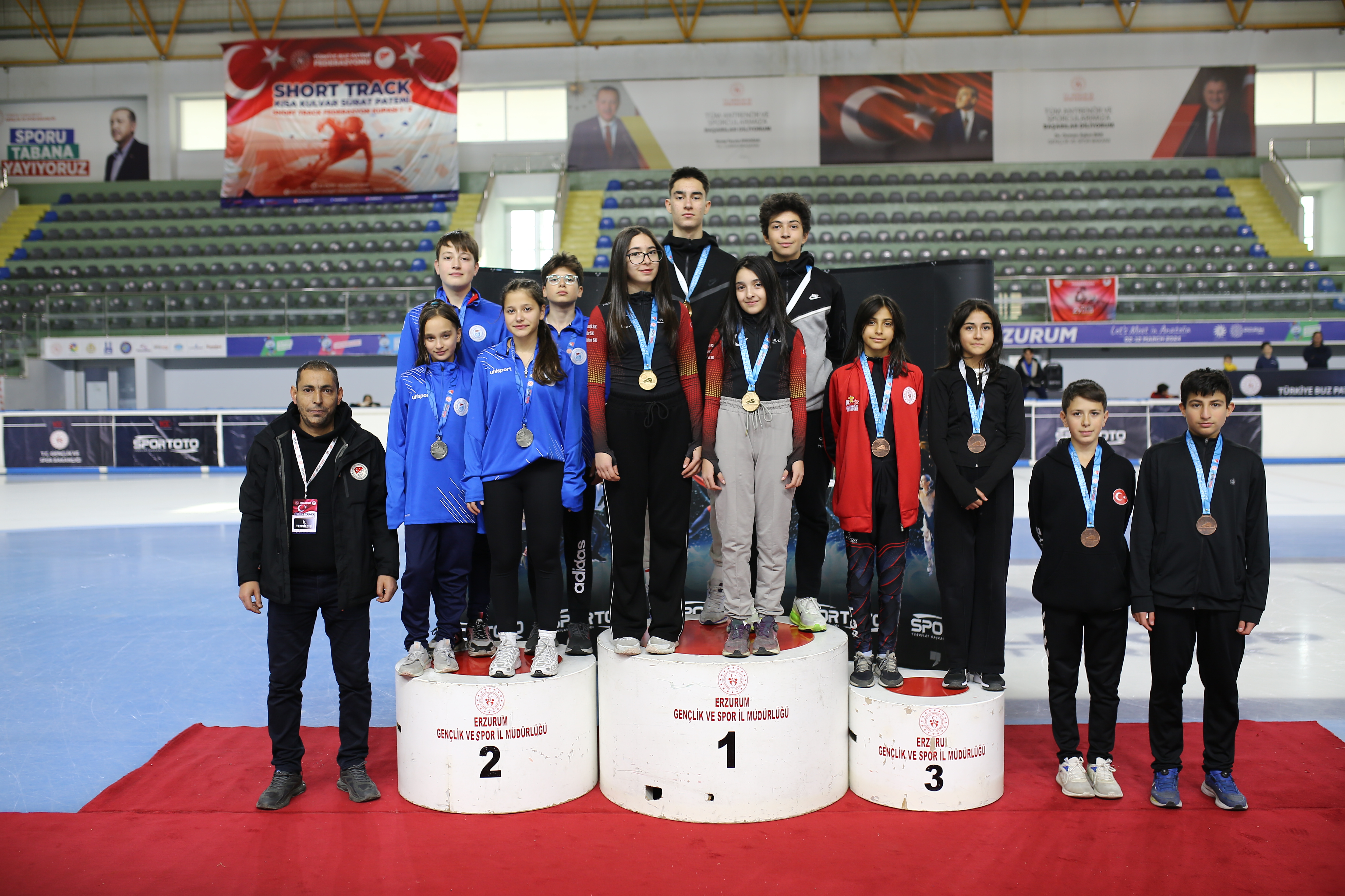 30 - 31 Ekim 2025 tarihlerinde Erzurum ilinde düzenlenen Short Track Federasyon Kupası 1 Yarışması sona erdi.Yarışmada dereceye giren sporcularımıza madalyalarını; Kredi Yurtlar Kurumu Genel Müdürü ve Federasyonumuzun Başkan Vekili Sayın Recep Ali ER, Erzurum Gençlik ve Spor Palandöken İlçe Müdürü Sayın Muzaffer KAYA, Erzurum Gençlik ve Spor Palandöken İlçe Şube Müdürü Sayın Melih KORKMAZ,Federasyonumuzun Yönetim Kurulu Üyeleri; Sayın Derya AKSOY, Sayın Naci KORUCU, Sayın Ahmet Hamdi IŞIK, Erzurum İl Temsilcimiz Sayın Emre ERTAN ve Palandöken 2000'lik Buz Pisti Tesis Amirleri; Sayın İbrahim PEHLİVAN,Sayın Yakup ASLAN, Short Track Milli Takım Antrenörümüz Sayın Artur SULTANGALİYEV takdim ederek sporculara başarı dileklerini ilettiler. Yarışmanın 2.gün ve Overall sonuçlarına aşağıdaki dosyalardan ulaşabilirsiniz.